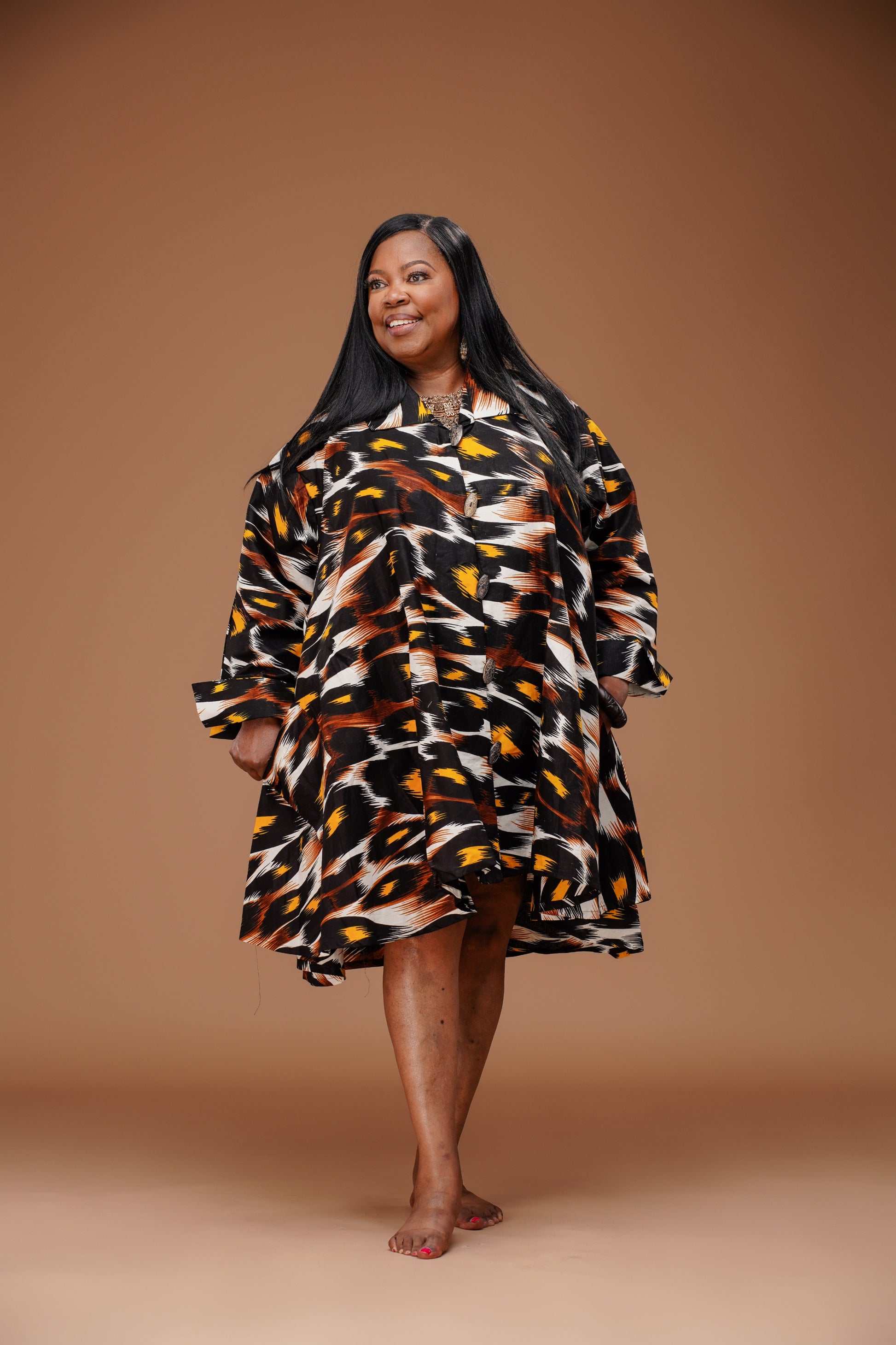 Kara Chic A-Line Midi Dress Abstract Print